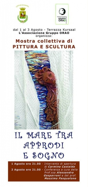 “Il mare tra approdi e sogno” è la mostra collettiva di pittura e scultura che l’Associazione Gruppo Orao propone dall’1 al 3 agosto prossimi con il patrocinio del Comune di Giulianova.. Lo scenario è quello della Terrazza del Kursaal Lido di Giulianova che offrirà i suoi spazi alle opere di 36 artisti abruzzesi. La manifestazione artistica, spalmata su tre giornate, aprirà i battenti alle ore 21:00 del 1° agosto con l’intervento del pittore teramano Carmine Castaldo. Il giorno successivo, 2 agosto, nel corso della inaugurazione ufficiale della mostra, ci sarà una conferenza congiunta della professoressa Alessandra Gasparroni e del professor Massimo Pasqualone avente come  riferimento il mare,.gli approdi ed i sogni collegati. Gli artisti partecipanti: Amalia Di Sante. Miriam Salvalai, Candida Ciccocelli, Alma, Carino Cordone, Carla Ciafardoni, Carmine Castaldo, Carmine Galliè, Daymar Josè Munoz, Domenico Giarratano, Elisa Vaccarini, Fabiana Di Girolamo, Francesco Ciccolone, Gabriella D’Eustacchio, Giuliano Lamolinara, Glauco Barlecchini, Luigi Maria Feriozzi, Laura Giansante, Loreto Cicoria, Loriana Valentini, Alberto Di Mattia, Luciano Astolfi, Lucia Ruggieri, Lucio Monaco, Magda Barnabei, Mariacristina Cirilli, Maria Luisa Falanga, Milli Salvalai, Patrizia Franchi, Renato Pillitteri, Roberto Di Giampaolo, Sandra Di Marcantonio, Sergio Di Mattia, Tonino Macrì, Umbertina Cappelletti e Patrizia D’Andrea. Oraria di apertura al pubblico: dalle ore 18:00 alle ore 24:00. Simbolo della rassegna è un grande pannello raffigurante la mitologica sirena realizzata da Maria Luisa Falanga e Miriam Salvalai dell’Associazione Gruppo Orao.