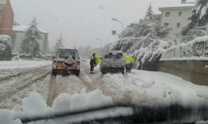 Continua a provocare disagi il maltempo che da stamane travolge Teramo e provincia. Alberi crollati lungo le strade principali e sulle zone collinari, traffico bloccato in zona Colleparco e nei pressi del carcere di Castrogno. Al lavoro Vigili del Fuoco e Protezione Civile. Difficoltà a spalare la neve con accumuli di quasi un metro tra Torricella Sicura e Rocca Santa Maria.